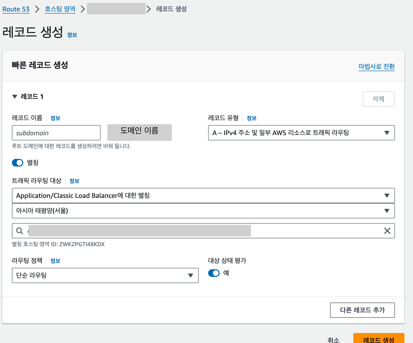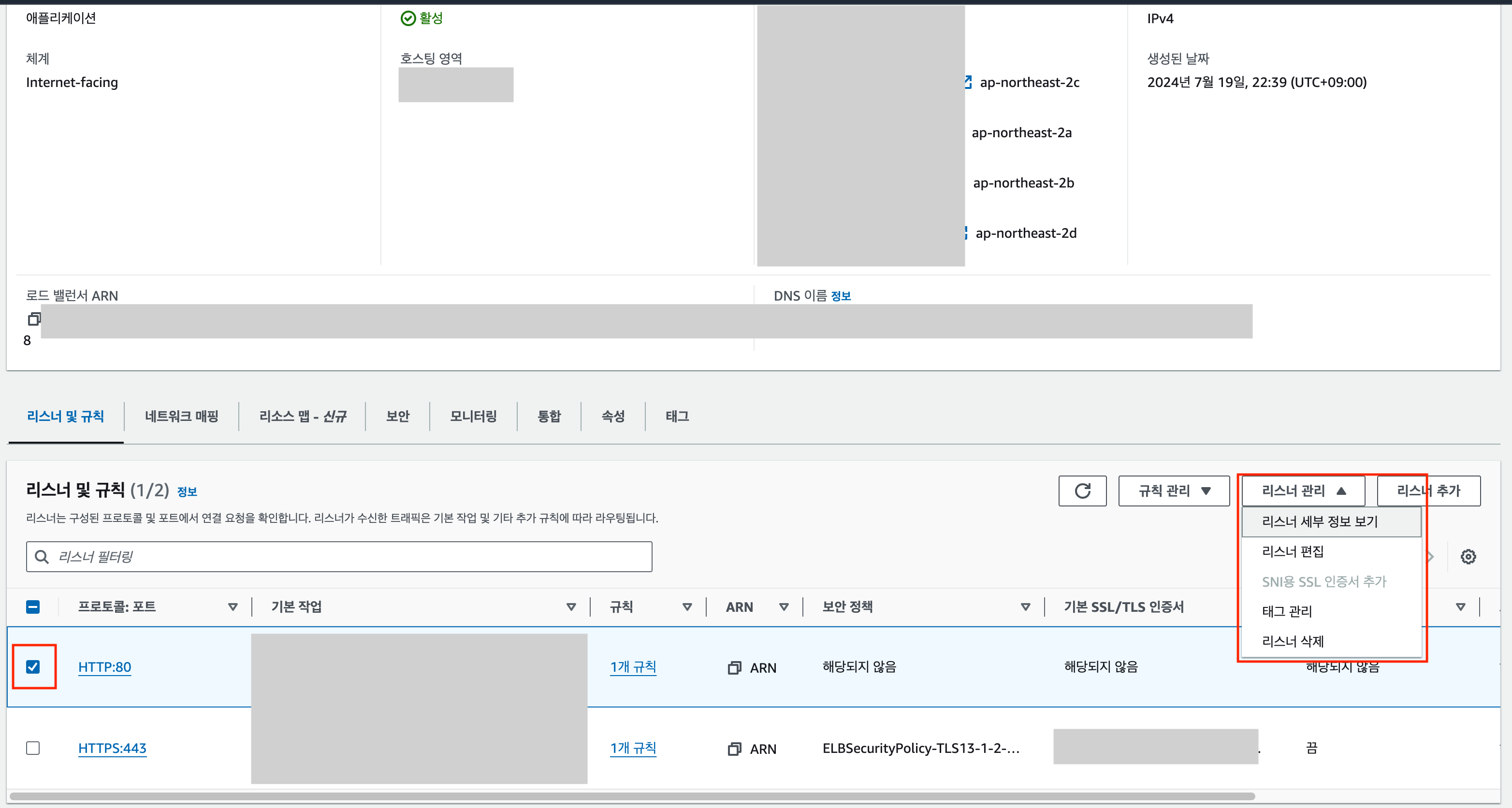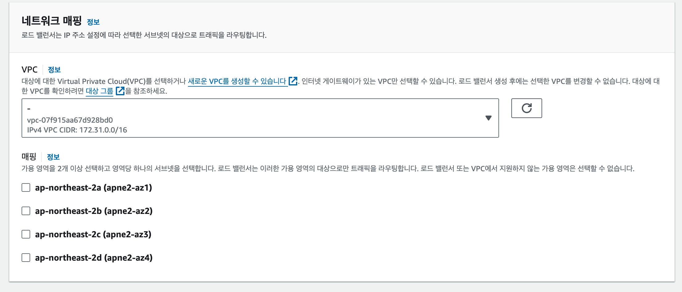 - 리전: 아시아 태평양(서울) (ELB 리전)