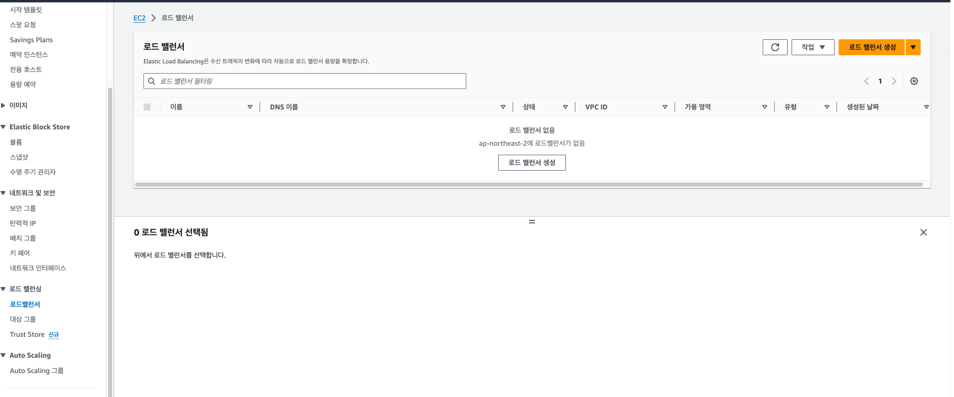 EC2 대시보드에서 로드밸런싱 메뉴의 로드밸런서 항목으로 이동합니다.