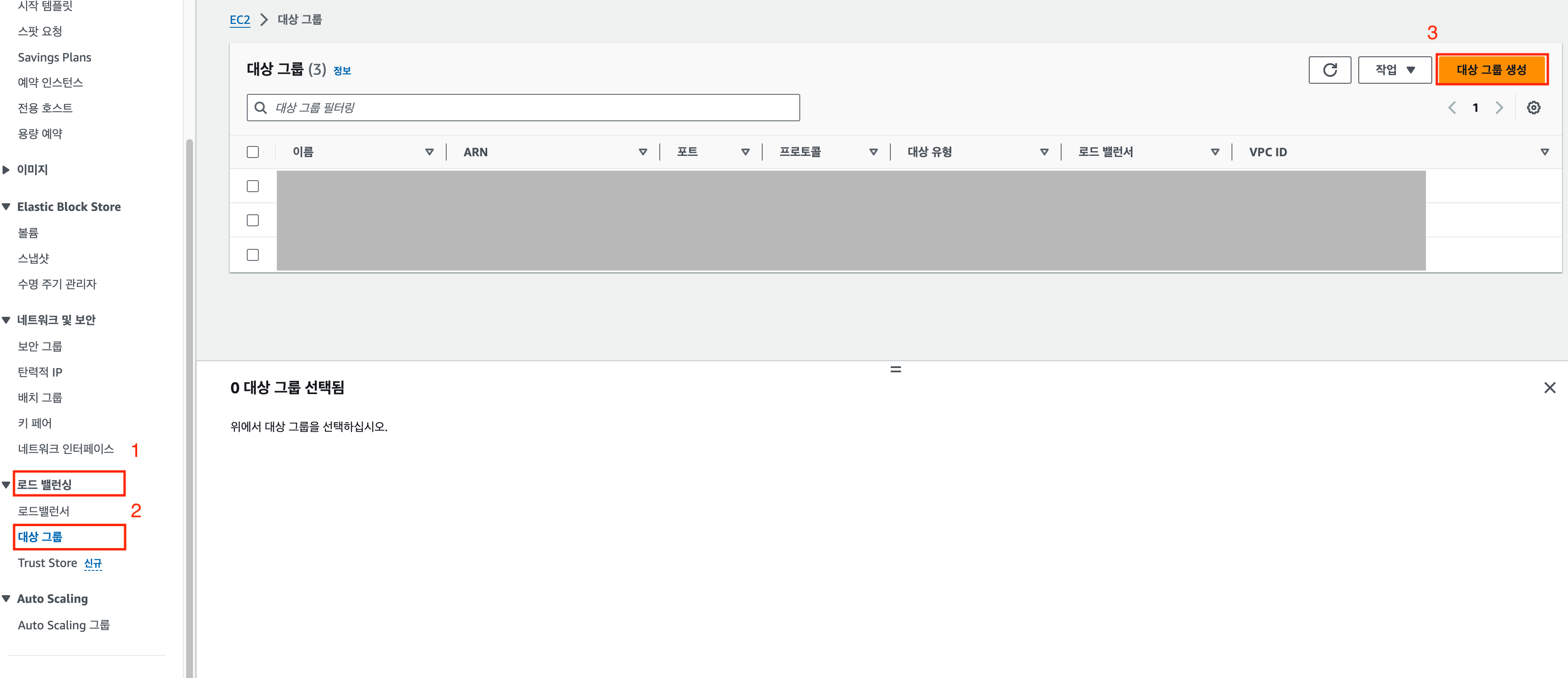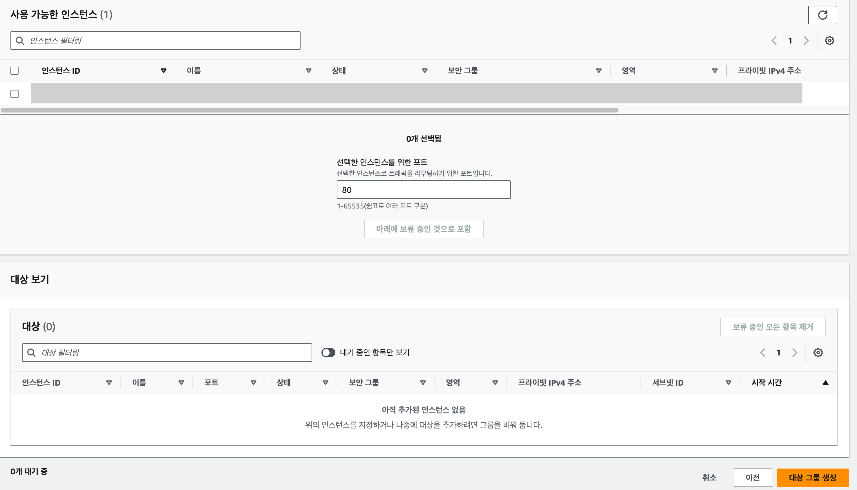 1. ELB 를 생성하기 위해 일단 대상 그룹을 생성합니다