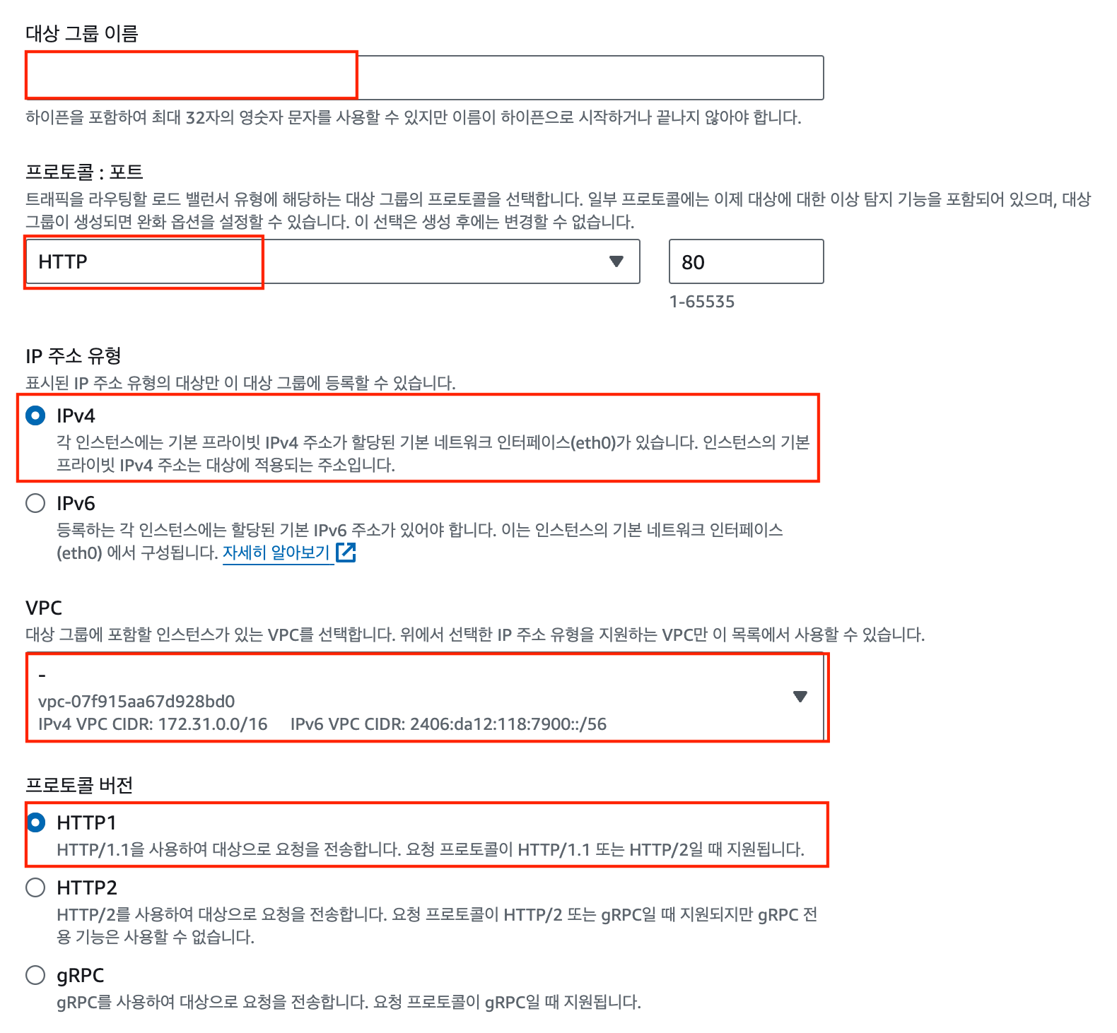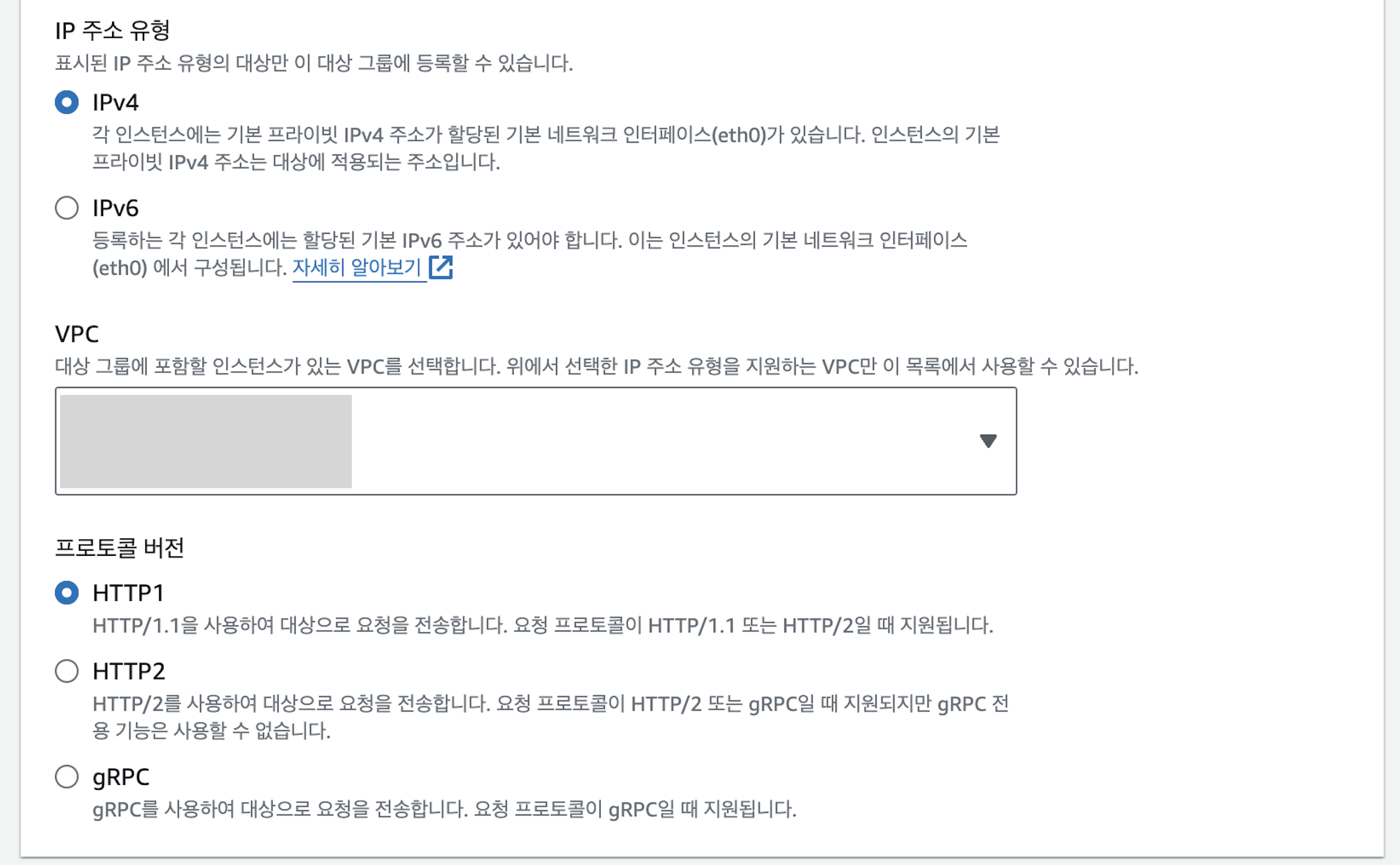 - VPC: 대상 그룹과 동일한 VPC를 선택합니다.