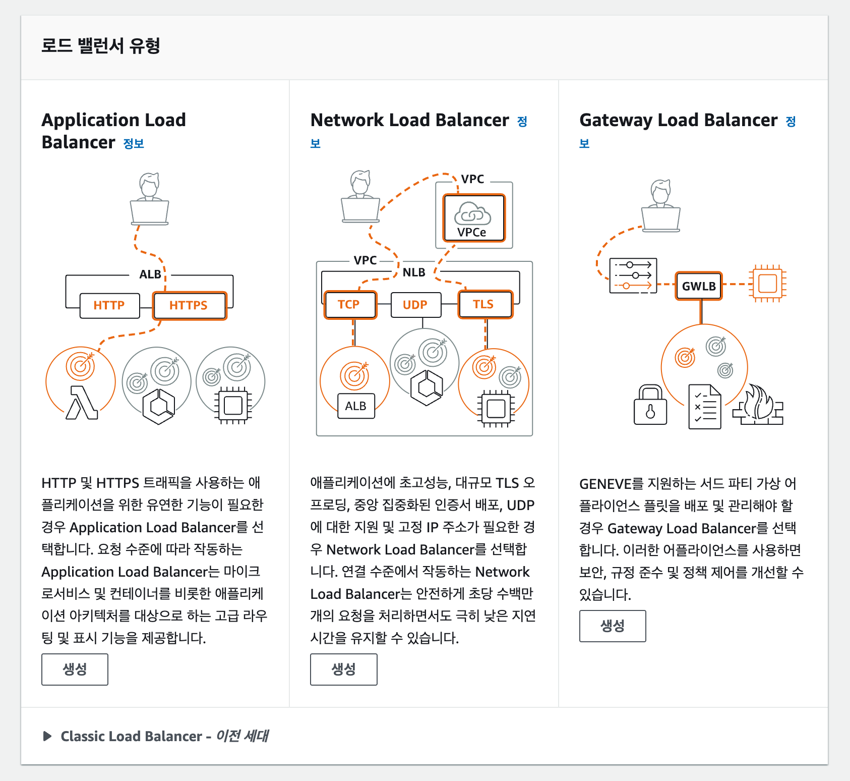 - Network Load Balancer (NLB), Gateway Load balancer (GWLB) 은 아직 잘 모르겠습니다.