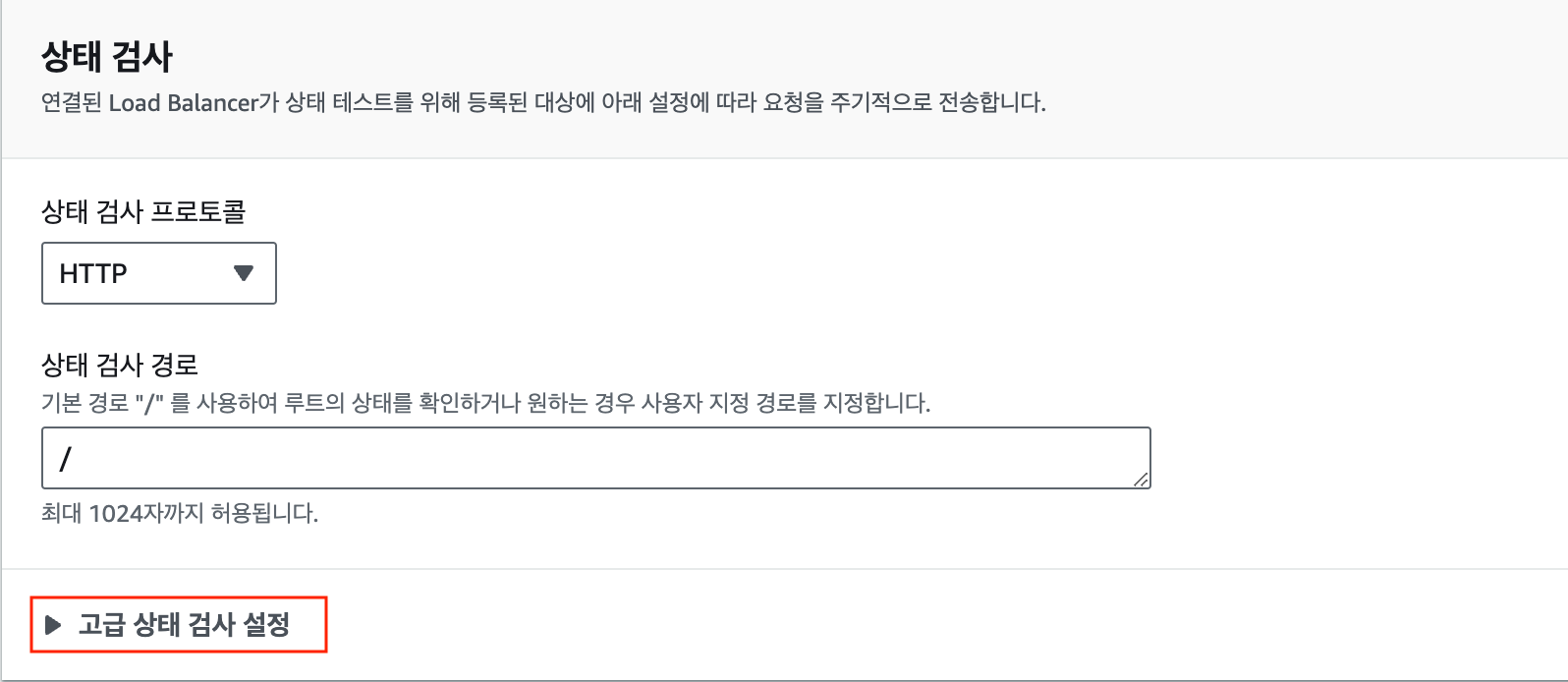 상태 검사 경로는 서버의 건강 상태를 확인하기 위한 것입니다. 예를 들어 Spring Boot Actuator를 사용하면 /actuator/health 경로에서 App의 health status를 제공합니다. 하지만 여기서는 / 메인 화면 요청으로 설정하겠습니다. 고급 상태 검사 설정에서 해당 경로 요청시 만족해야 하는 조건을 확인할 수 있습니다.