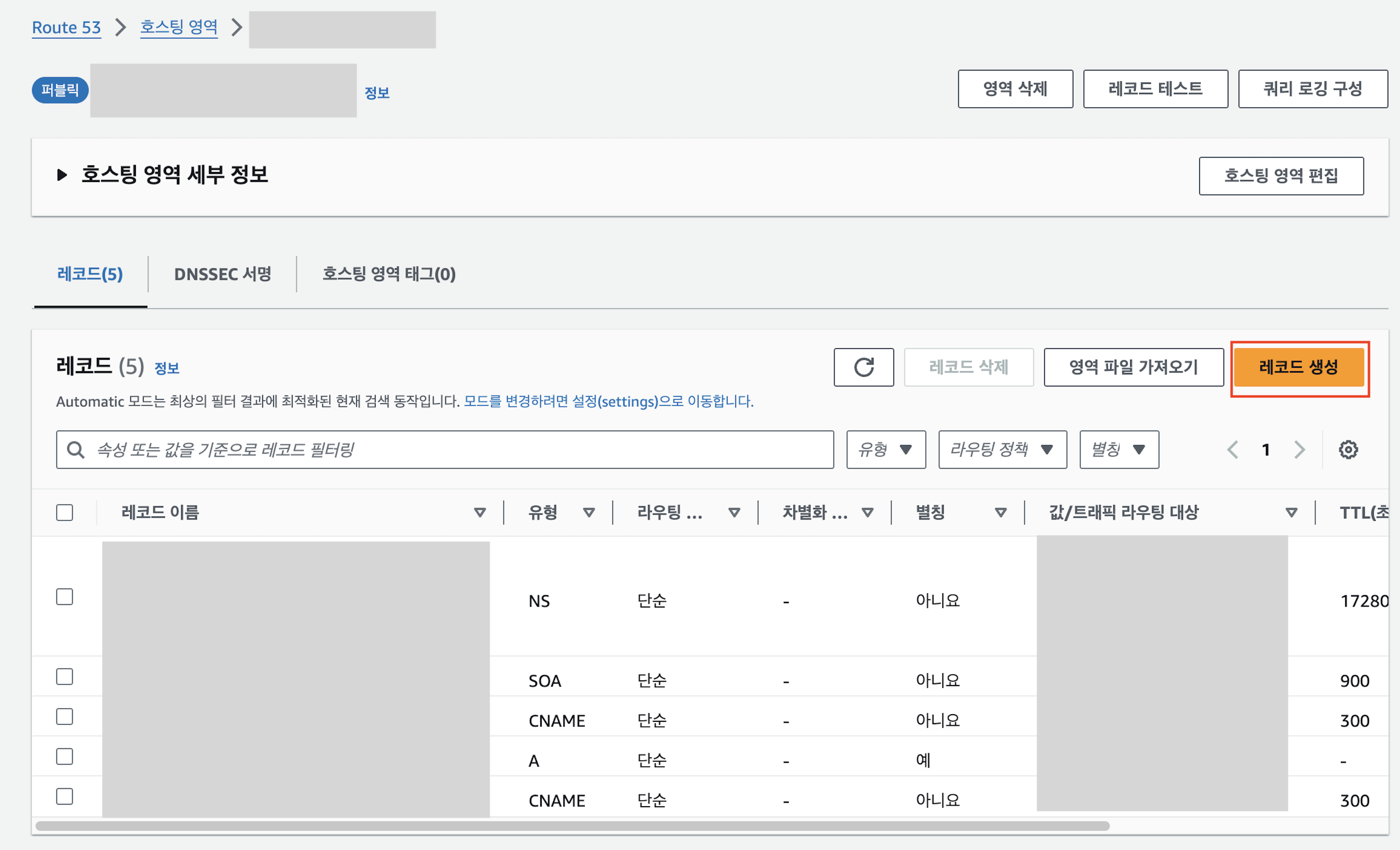 15.2 레코드 설정 후 생성합니다.