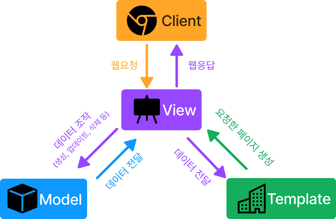 - Template: 클라이언트에게 보여주는 레이아웃과 구조를 정의하며 동적인 데이터를 받아 HTML 파일을 생성합니다.