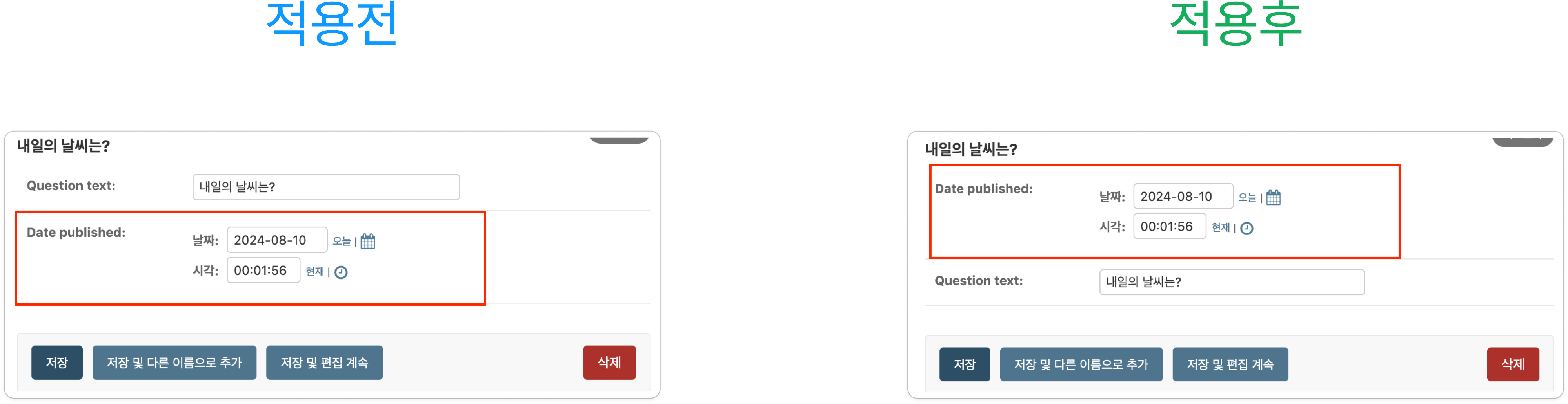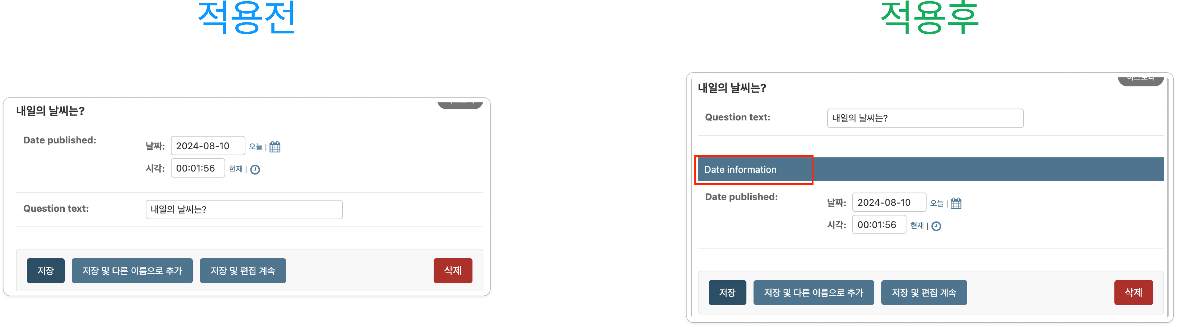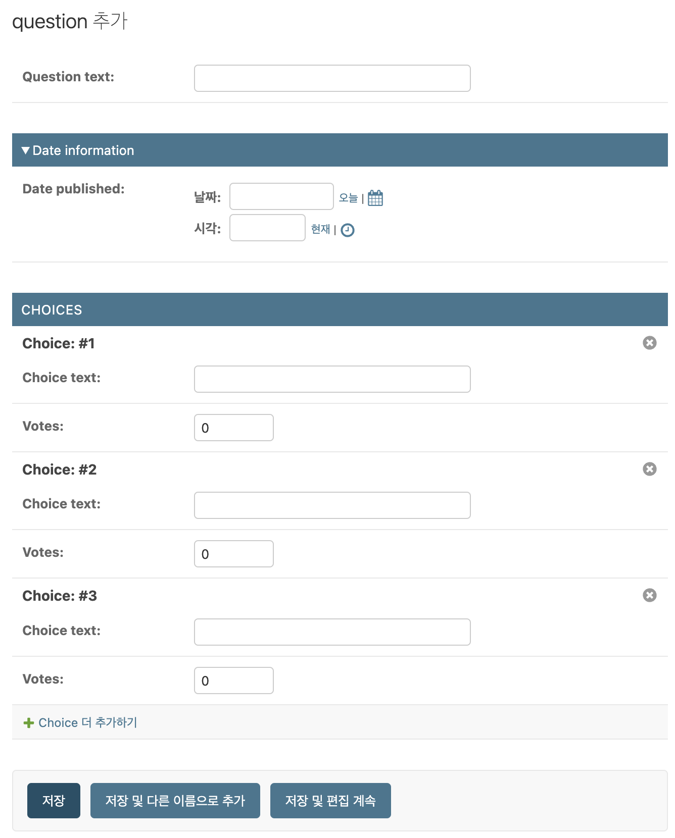 Question 추가 페이지에 Choice가 아래와 같이 추가됩니다.