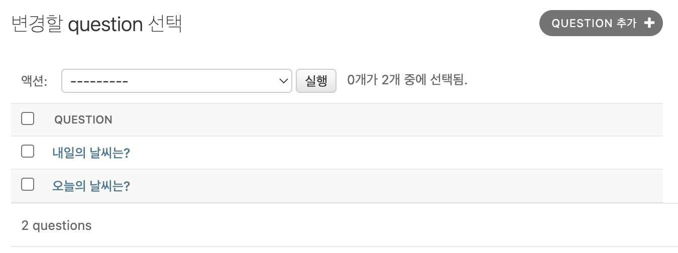 아래 Question change list 페이지를 약간 커스터마이징하겠습니다.