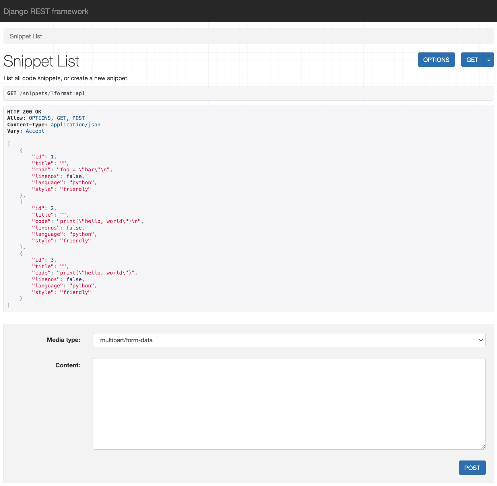 http http://127.0.0.1:8000/snippets/ Accept:application/json # Accept header 사용