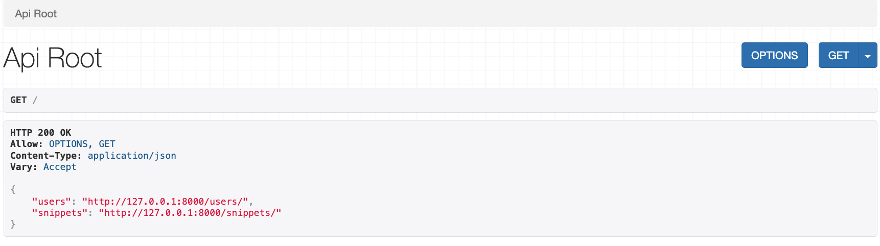이로써 루트 URL에서 users와 snippets 엔드포인트로 쉽게 접근할 수 있습니다.