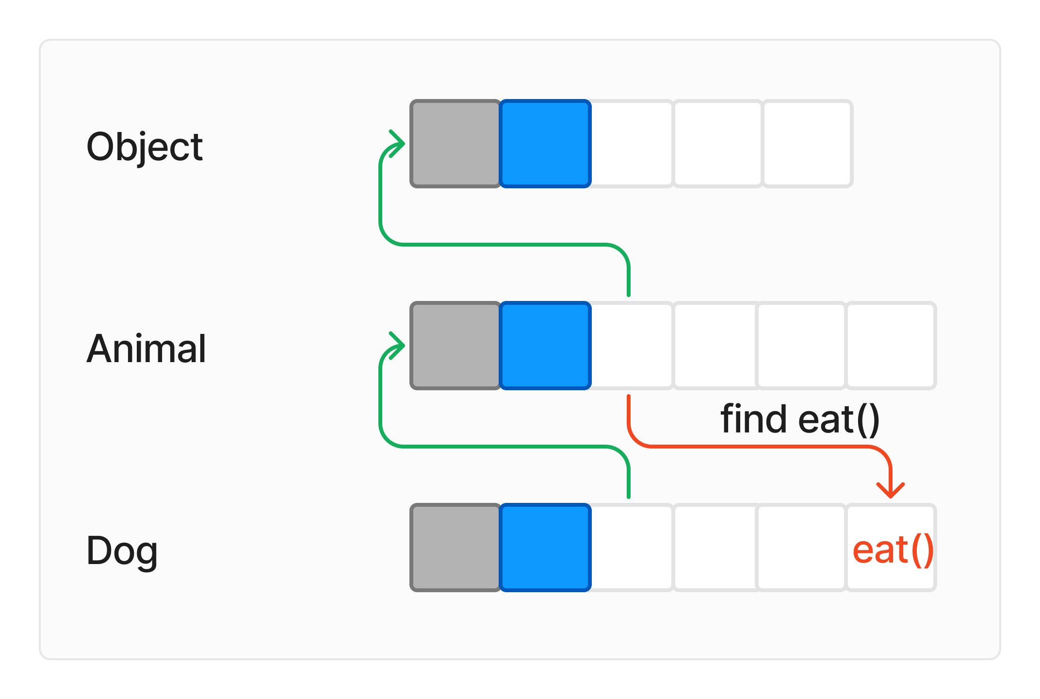 내부적으로 위 작업을 수해하기 위해 JVM은 클래스별로 해당 클래스의 메서드 테이블을 가지고 있습니다. 이 테이블은 vtable이라고 불리며 클래스의 메서드들을 가리키는 포인터들을 가지고 있습니다. 이 테이블은 JVM에 필요한 메타데이터를 보관하는 JVM 내부의 메타스페이스(namespace)라는 특수한 메모리 영역에 저장됩니다.