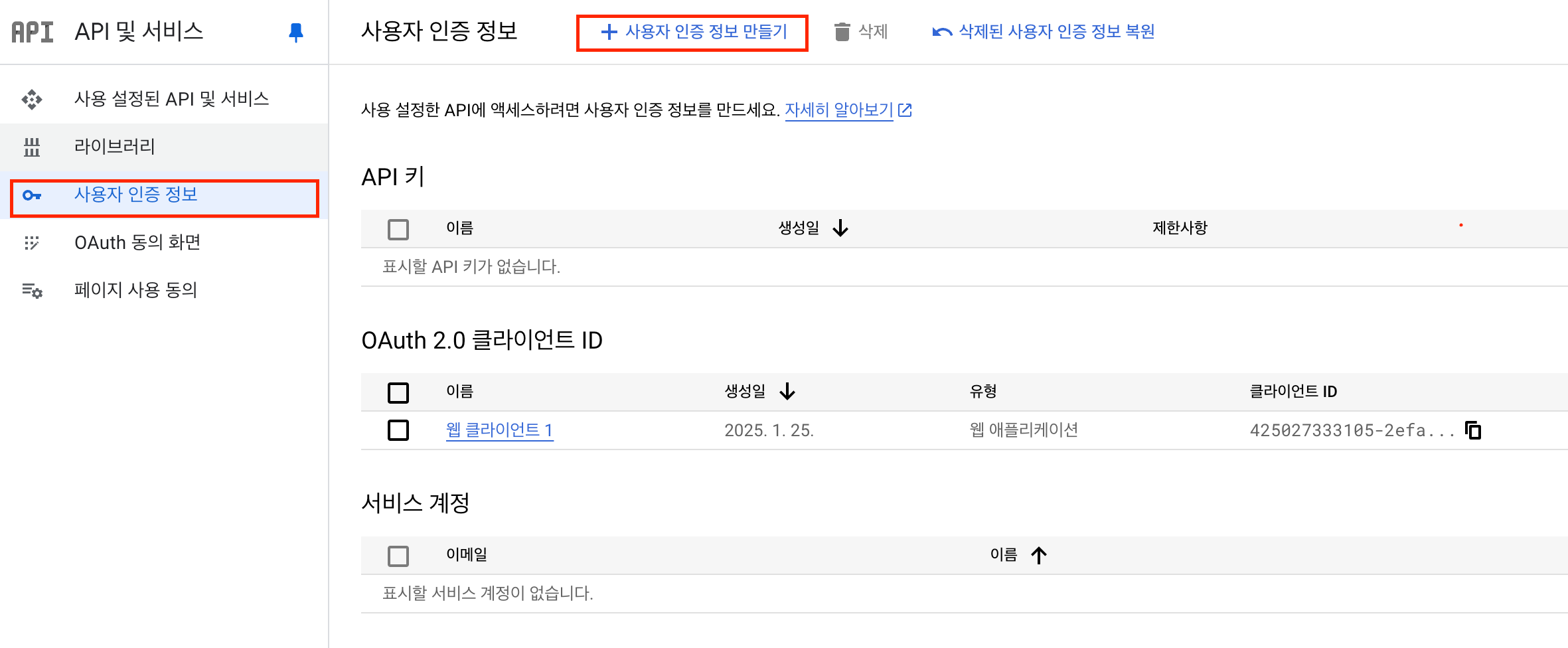 승인된 리디렉션 URI: 사용자가 인증을 완료하면 Google이 사용자를 리디렉션하는 URI입니다.- 예: